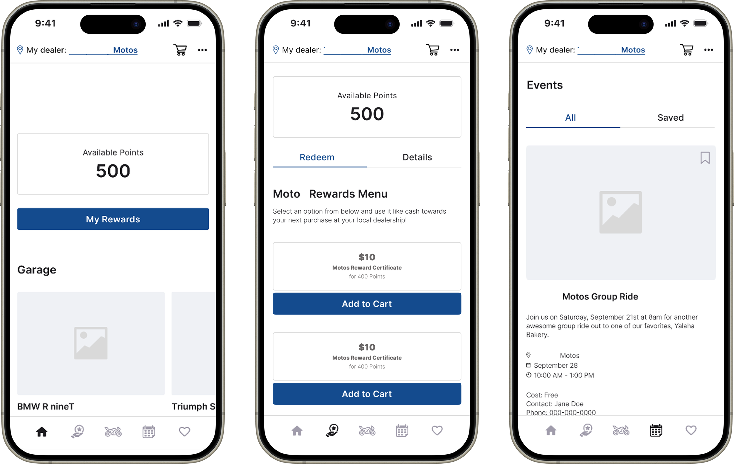 To redesign a motorcycle rewards app, focusing on improving user-friendliness and modernizing the user interface.